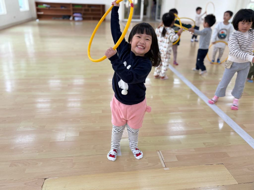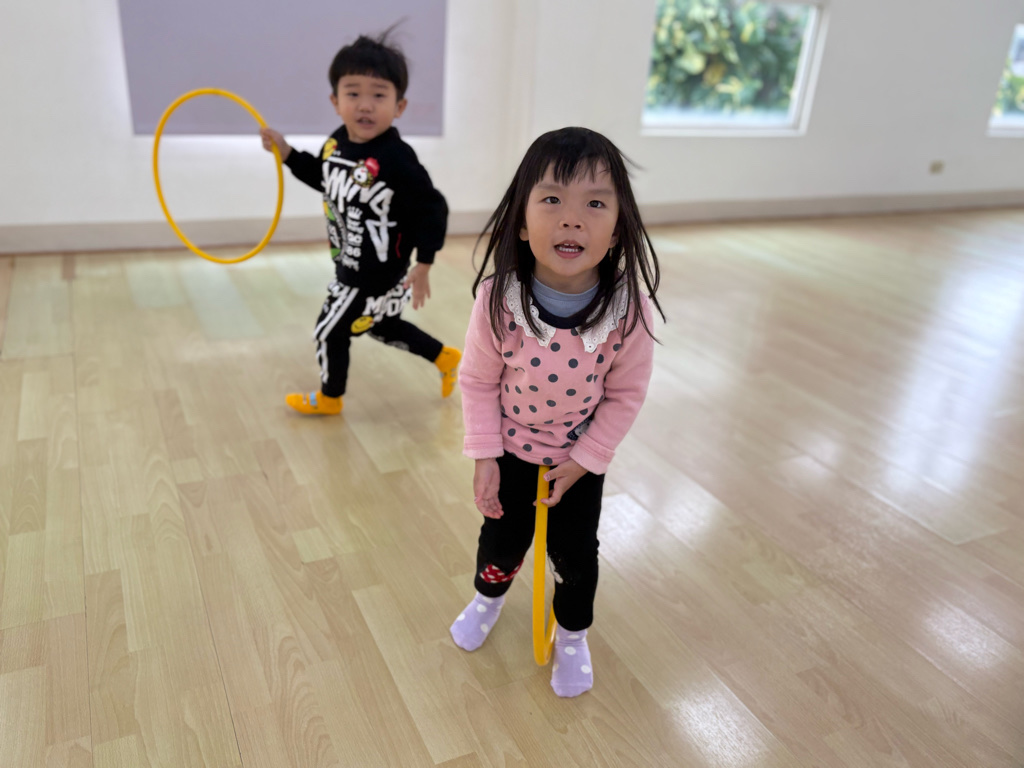 利用呼啦圈結合音樂,孩子不亦樂乎!